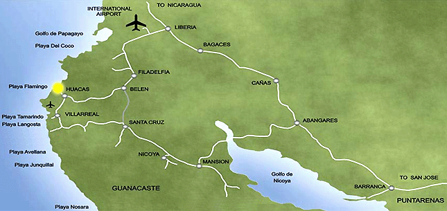 With Costa Rica becoming so popular, many daily flights are available into San Jose and Liberia international airports. It is easy to get to Flamingo. From the capital, San Jose, you have the choice of taking a 40-minute commuter flight to the airstrip in nearby Tamarindo or renting a car for a scenic 4-hour drive across the mountains to Villa Palombia. A more convenient option may be to fly into the Liberia International Airport. From there you can drive to Villa Palombia in 45 minutes. |